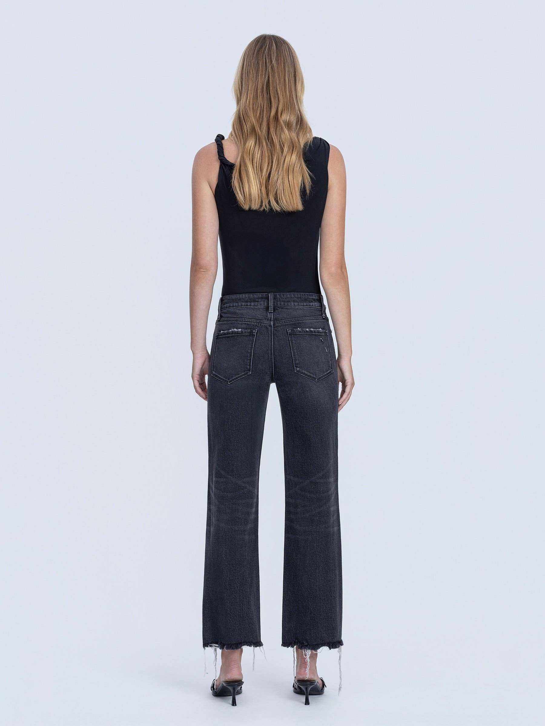 MID RISE RAW HEM BLACK SLIM WIDE JEANS HP